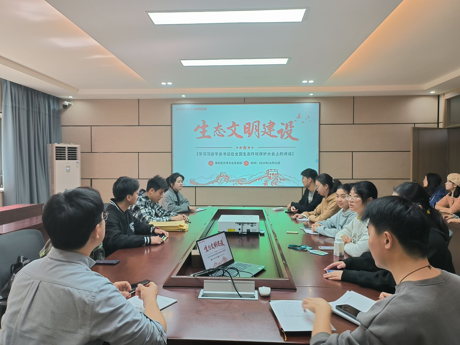 会议伊始,党支部书记李东辉带领参会人员集体学习了习近平总书记在全国生态环境保护大会上的讲话,他系统地论述了推进生态文明建设需要处理好五个重大关系,鼓励环境专业学生注意新趋势,把握新趋势,匹配相关能力,发挥党员力量,努力提升自我,建设祖国环保事业。