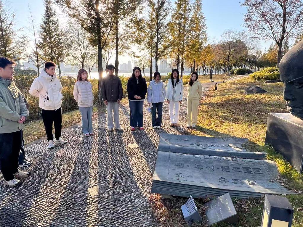 活动的最后一站,全体成员来到了谭嗣同雕像前。支部成员潘友翔讲述了这位近代先驱为变革图强而甘洒热血的生平事迹,回顾了这位维新志士以热血浇灌理想、用生命唤醒国人的悲壮历程。从救亡图存的舍生取义,到新时代环境人建设生态文明的久久为功,时代使命虽异,但那份为国为民的核心担当一脉相承。大家一致认为,作为环境学子,更应主动接过历史的接力棒,在深入打好蓝天、碧水、净土保卫战中展现环境学子的专业担当,为建设美丽中国贡献青春力量。
