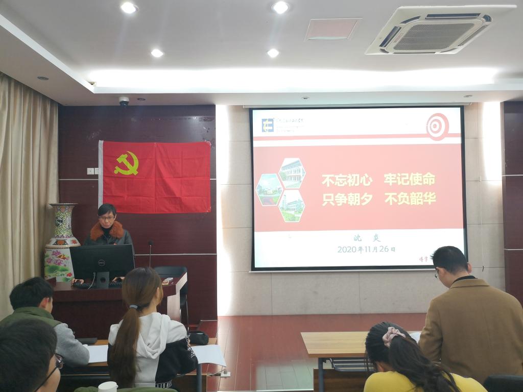 邀请到沈炎老师为入党积极分子们解读“不忘初心、牢记使命;只争朝夕,不负韶华”的深刻内涵。沈炎老师从“什么是不忘初心”“为什么坚守初心”和“怎样不辱使命”三个方面展开讲解,帮助同学们更好地学习了初心与使命的内涵。