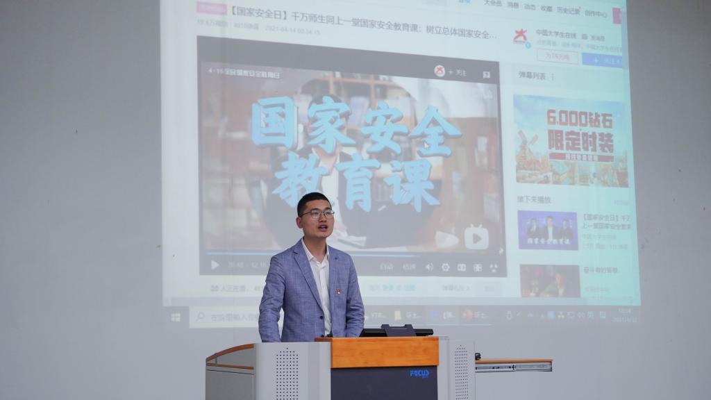 师生共同观看学习视频《国家安全教育课》,视频揭示敌对分子的不法行径,他们以高薪职哄骗我国在校大学生从事间谍工作,诱使大学生偷拍我国军工企业、航母、军舰以及军事基地照片,从而获得我国国防建设情报。辅导员何涛向学生们强调,要时刻保持清醒的头脑,明辨是非,坚定信心;要牢固树立国防安全意识,坚决反对危害国家安全行为,如发现此类行为要立即检举;寻找兼职要通过正规途径,从事正规兼职工作。