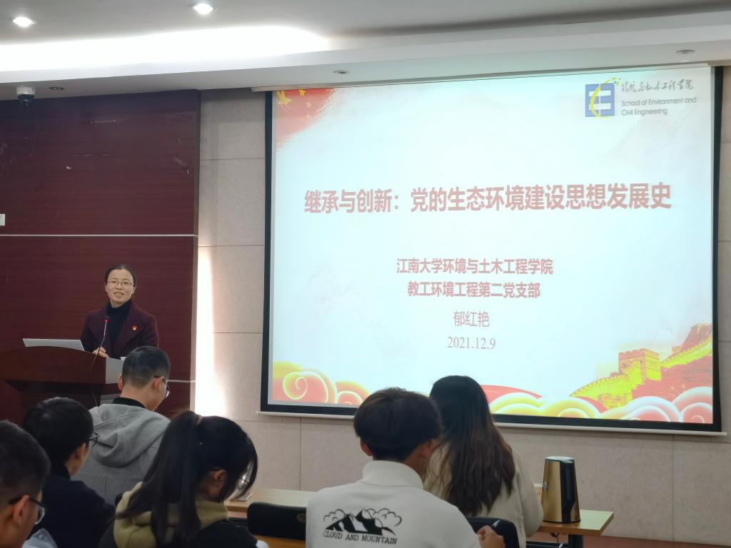 2021年12月6日,环境与土木工程学院在学院楼D303举办第四次入党积极分子理论学习讲座,本次讲座分为两场,分别邀请了环境工程第一党支部书记张衍老师与郁红艳老师,全体积极分子参加此次讲座。