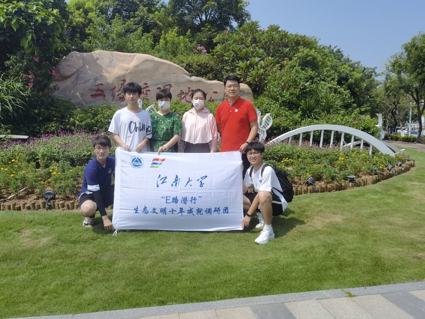 实践团队在五缘湾湿地公园门口处合影