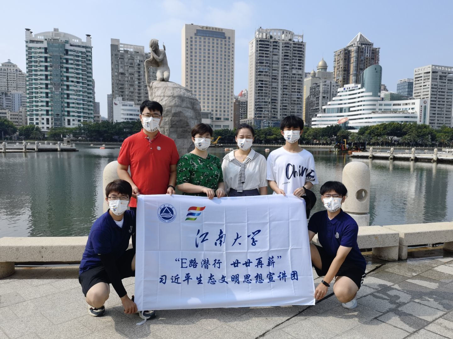 实践团队与筼筜湖中心白鹭女神像合影