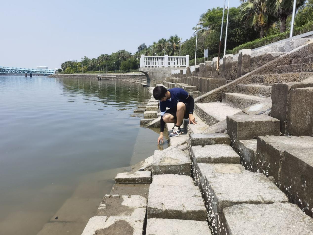 团队成员采集五缘湾湿地公园水样