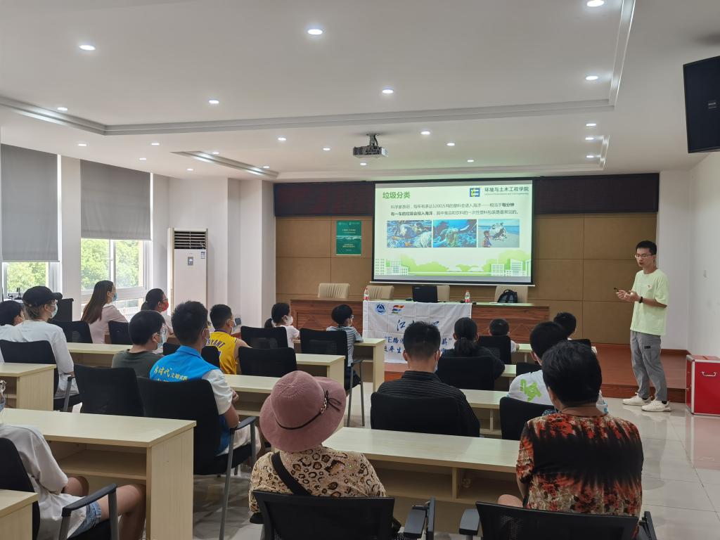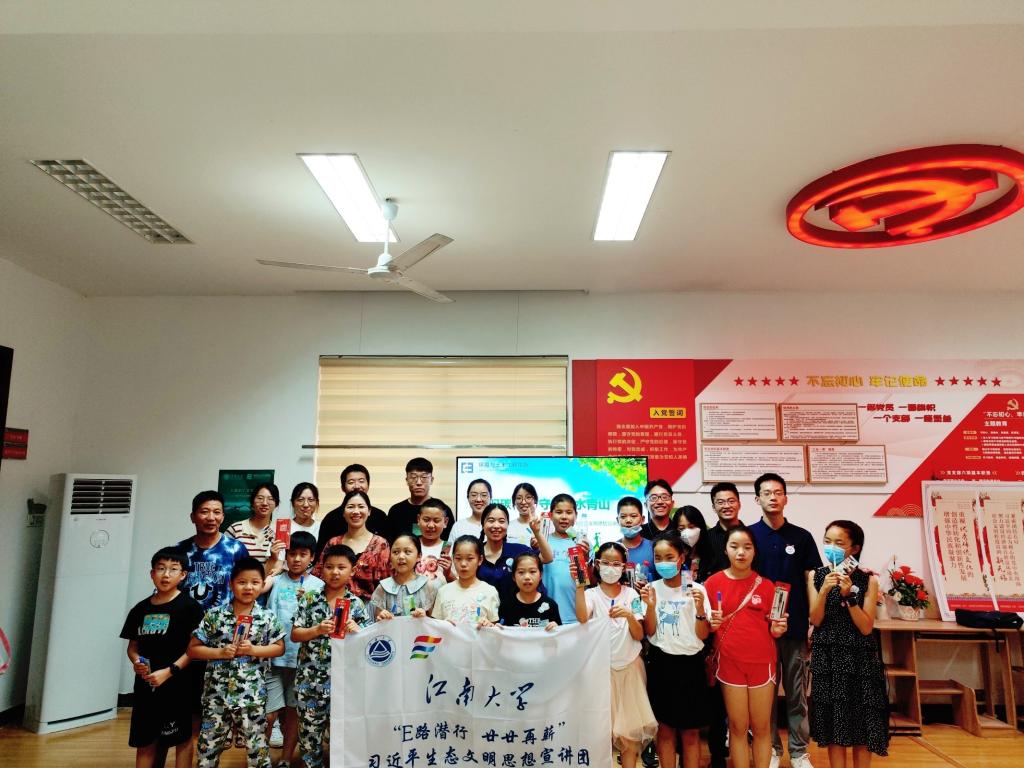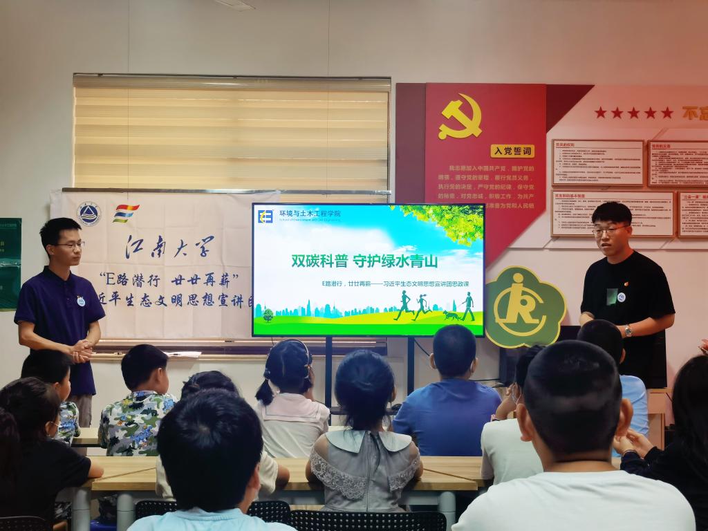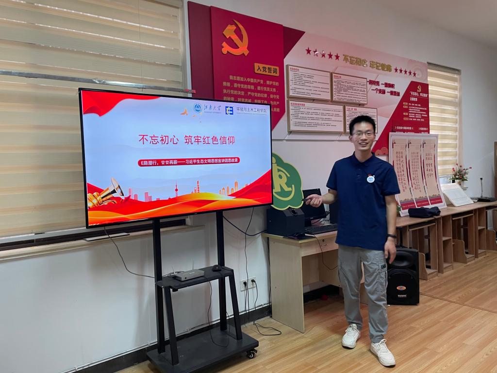 环境与土木工程学院组建了“E路潜行,廿廿再薪”研究生党员宣讲团,于2022年8月中下旬分别探访了王选事迹陈列馆、顾毓琇纪念馆等红色革命基地,并在无锡市崇安寺街道东河花园社区、广益街道毛湾一苑社区、扬名街道芦一社区、广益街道毛岸新苑社区、北大街街道金河湾社区等地开展了环保科普宣讲。宣讲团以习近平生态文明思想为主题,结合海报、视频、有奖竞答等方式科普了双碳战略、垃圾分类等环保知识,寓教于乐,让大家积极参与到活动中,让环保知识深入人心。