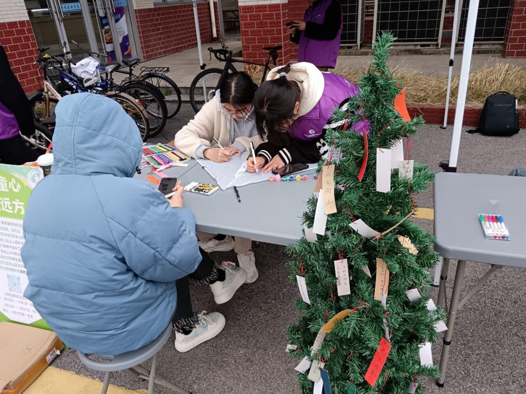 活动伊始,一棵装饰精美的爱心树成为了现场的焦点。志愿者们纷纷拿起笔和纸,用心为山区儿童写下诚挚的祝福。这些祝福语中既有对孩子们学业的鼓励,也有对他们健康成长的期盼,每一句都凝聚着志愿者们对山区儿童的深情厚意。