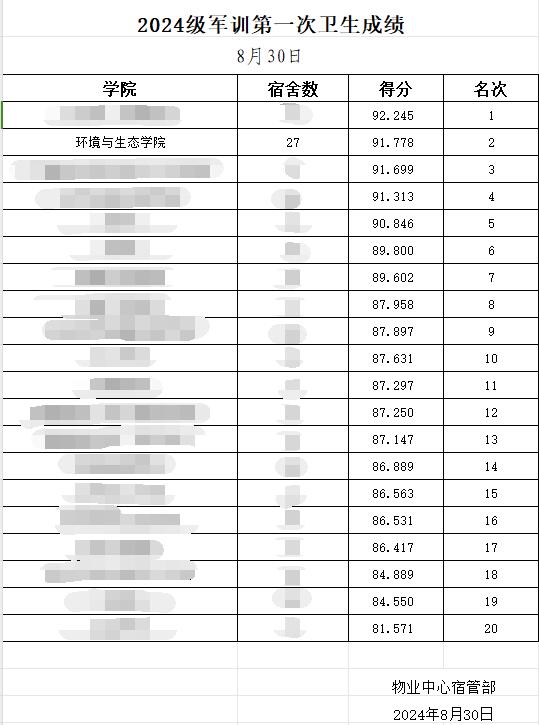 在8月30日第一次内务评比中位列全校第2位。