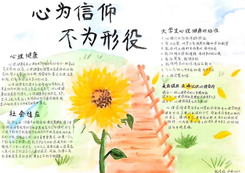 开展了主题手抄报评比展示活动,向全院同学收集“共建共治共享,同心健心安心”主题手抄报。活动旨在通过手抄报的形式增强同学们的精神健康意识,营造良好的心理健康氛围,进一步提升大家参与学习生活的积极性。