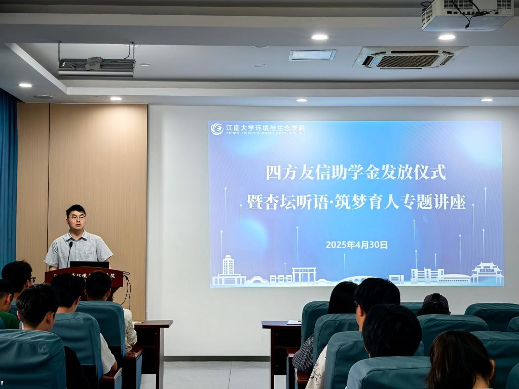 于学院楼D303会议室举办四方友信助学金发放仪式暨“杏坛听语·筑梦育人”专题讲座。辅导员李东辉、38名受助学生共同参与活动,通过“资助+育人”双轨并行的形式,深化感恩教育、诚信教育与安全教育实效。