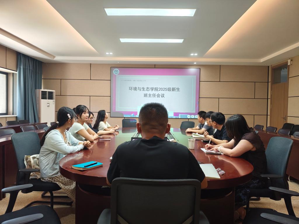 为扎实做好2025级新生教育管理服务工作,8月28日下午,环境学院于学院会议室召开新生班主任工作专题会议。学院党委副书记兼副院长胡娟、全体新生班主任、新生辅导员及副班主任共同参会,共商迎新之策,共谋育人良方。