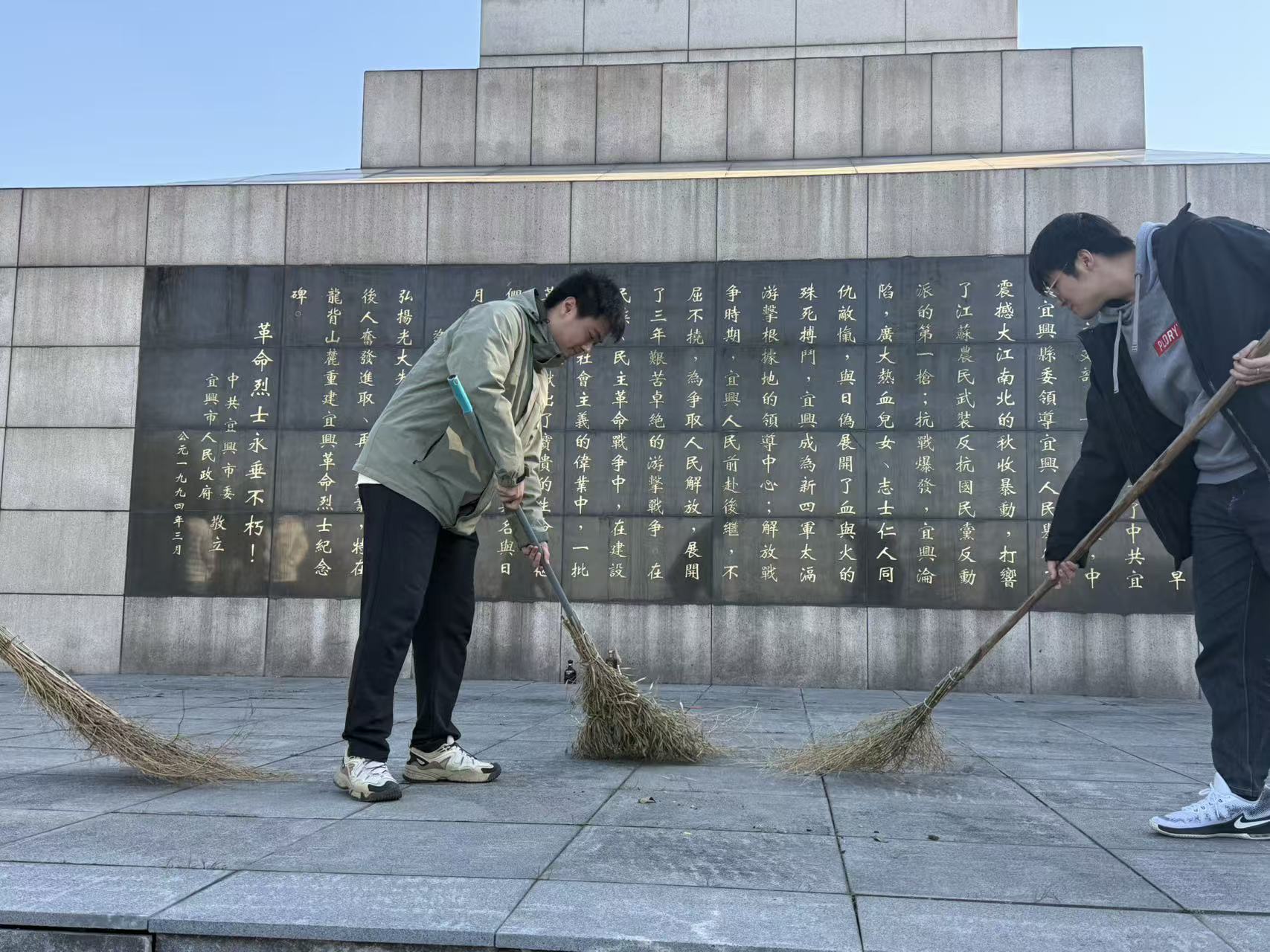 随后,支部成员们怀着崇敬之情来到宜兴革命烈士纪念碑前,开展庄严的祭扫活动。党员们肃立默哀,深切缅怀长眠于此的革命英烈。随后,大家手持清洁工具,认真清扫周边落叶与杂物,以实际行动表达对革命先烈的敬仰和追思。在祭扫活动中,党员们深刻体悟到今日和平与发展的来之不易,坚定了守护历史记忆、传承红色基因的当代责任。