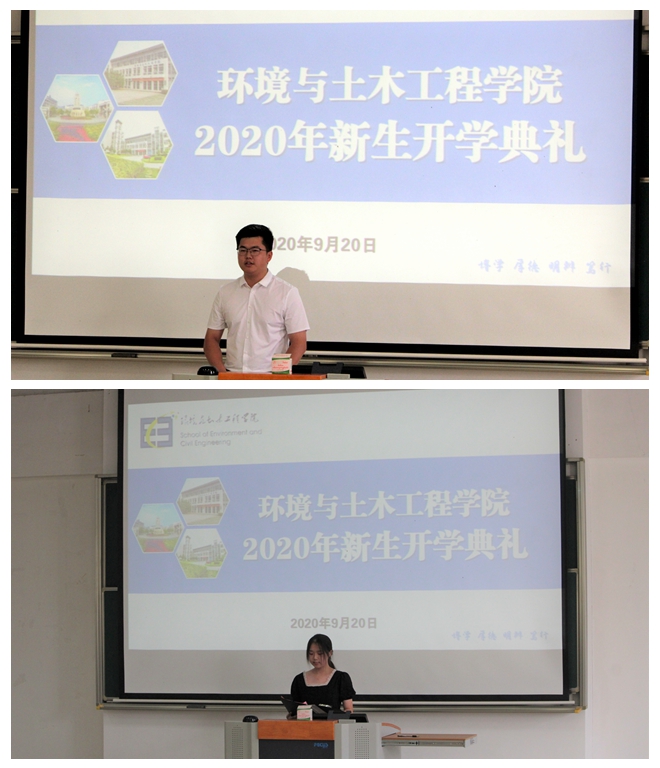 环境与土木工程学院隆重举行2020级新生开学典礼暨本科专业介绍会。学院党政领导,各专业系主任、辅导员、班主任、副班主任以及2020级全体本科生、研究生参加典礼。典礼由院党委副书记兼副院长胡娟主持。