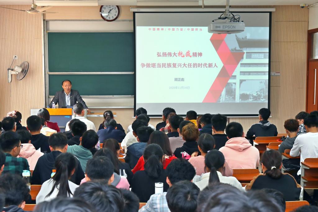 11月16日下午,副校长顾正彪教授走进思想政治理论课课堂,以“弘扬伟大抗疫精神,争做堪当民族复兴大任的时代新人”为题,为环境与土木工程学院2020级土木工程专业学生讲授形势与政策课。院党委书记李艳,副书记胡娟,辅导员何涛和110余名学生参加学习。