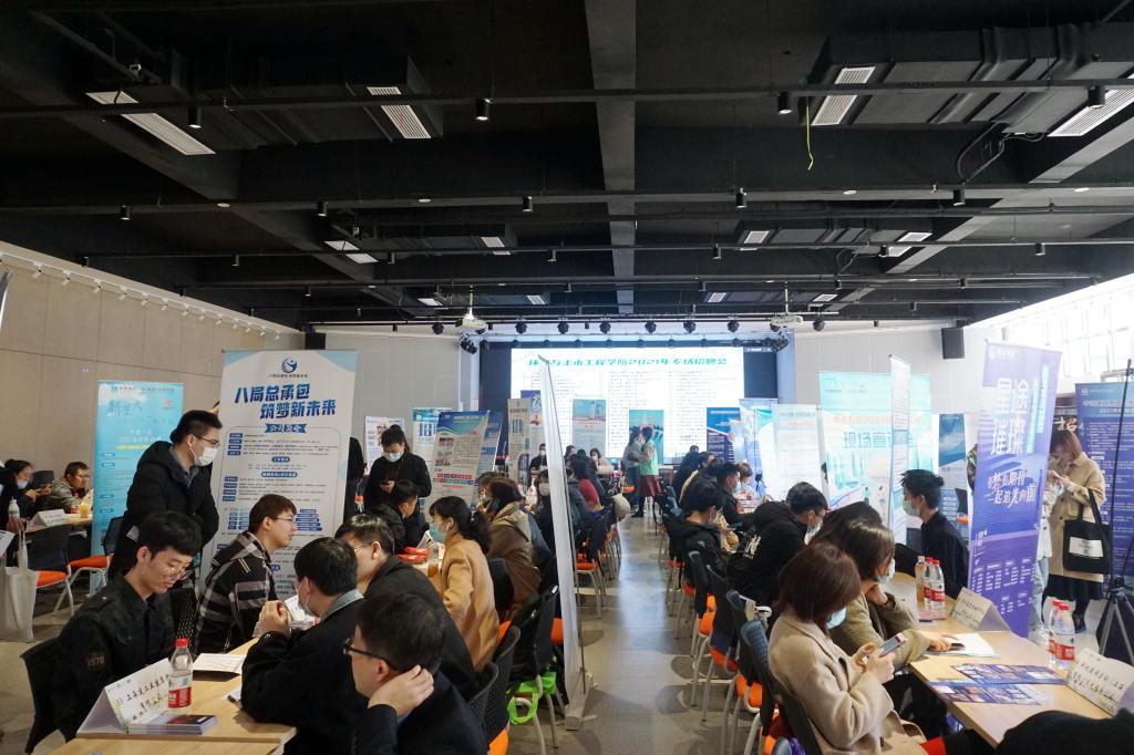 环境与土木工程学院2021年专场招聘会在北区大学生活动中心F105举办。吸引来自近150家企业报名,最终全国各地64家单位前来招贤纳士,其中包括江苏金山环保科技有限公司、中建四局第六建设有限公司、无锡马盛环境能源科技有限公司、无锡新视野环保有限公司等行业知名企业,总计提供职位数达500余个,岗位需求涵盖本、硕、博各学历层次,为毕业生择业提供了更多选择和广阔舞台。此外,本场招聘会还设置了征兵宣传专用展位。学院全体2021届未就业毕业生参会,同时也吸引了多名兄弟学院学生、2022届毕业生。