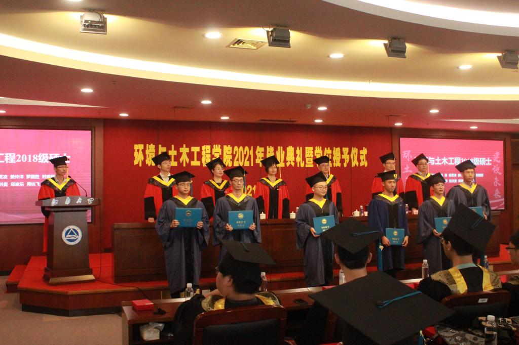 又是一年毕业季,依然十里栀花香。6月19日下午,环境与土木工程学院2021年毕业典礼暨学位授予仪式在图书馆510报告厅举行。院党委书记李艳,院长王震宇,副院长邹华、缪恒锋、王新华,环境工程专业李激教授,环境工程系副主任张衍,土木工程系主任刘文化,工程管理系主任沈洪明,毕业班班主任薛羚伟、严心池、付小英、张清峰、李祎飞出席典礼。环境与土木工程学院2021届全体毕业生参加了本次典礼。典礼由院党委副书记胡娟主持。