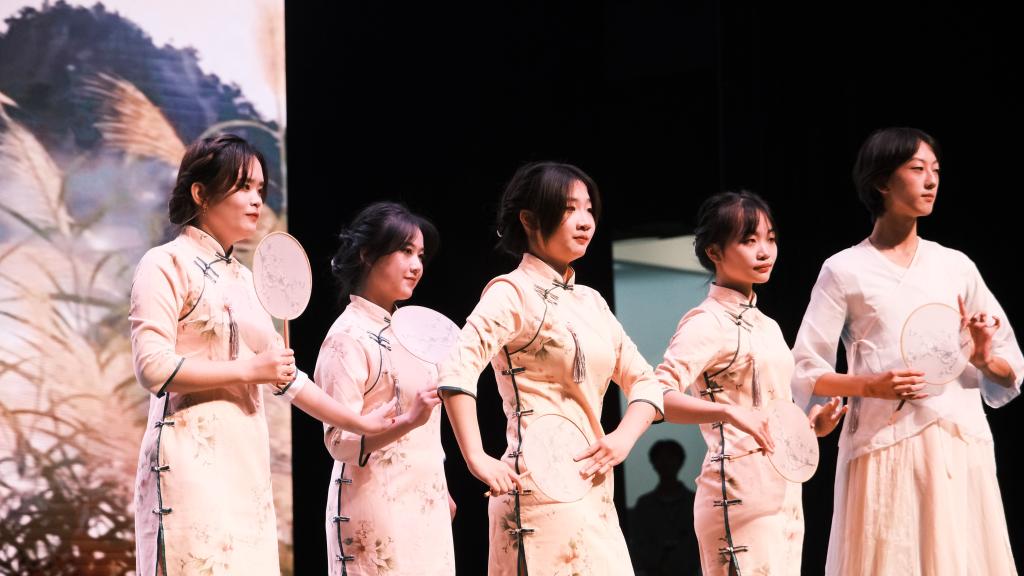青年悄奋起,其势岂可当。“韶光肇启”篇章里,环工2201班的合唱《夏天的风》唱出了少年心里忘不了的校园、忘不了的夏天与忘不了的那个人;校艺术团舞蹈部的爵士舞《Mascara》以奔放的身姿彰显了现代舞的活力满满,激情飞扬;环工2202班的舞台剧《白雪公主新编》融汇新时代的巧思妙想,给予了我们不一样的童年故事;学院教师合唱团带来的《如愿》则以百年传承之壮美,歌出了世间山河之广阔,点燃全场氛围;环科2202班的《被子舞》表演以轻快、动感的节奏,令人耳目一新,现场观众不自觉跟着节奏舞动。