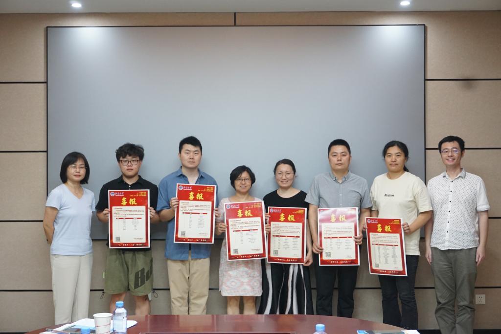 发放招生喜报合影