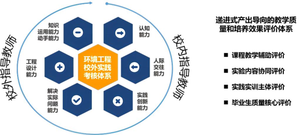优化教学质量与培养效果评价体系。全面引入行业知名企业评价培养效果,最终形成课程教学辅助评价、实验内容协同评价、实践实训主体评价、毕业生质量核心评价的递进式产出导向的教学质量和培养效果评价体系,委托合作企业全面评估学生实践与创新能力,反馈指导环境工程人才培养模式改革。