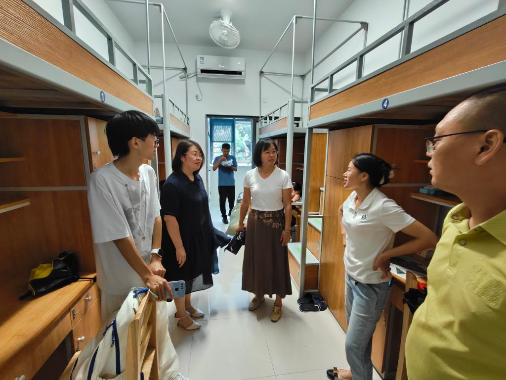 30日下午,学院党委书记李艳、党委副书记兼副院长胡娟、辅导员李东辉、刘子琪走进2023级新生宿舍,就大学学习生活、宿舍条件、安全防范等与新生和家长进行充分的交流,并送去诚挚的祝福和亲切的关怀。新生纷纷表示,要努力学习专业知识,早日融入校园生活,奋力开启人生新阶段!