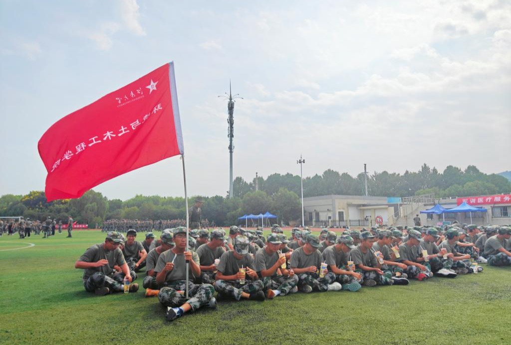 2023年9月11日下午,环境与土木工程学院党委书记李艳,副书记兼副院长胡娟以及人民武装部军事训练科刘璇刚老师一行,前往军训场亲切慰问正在进行军训的2023级学生。