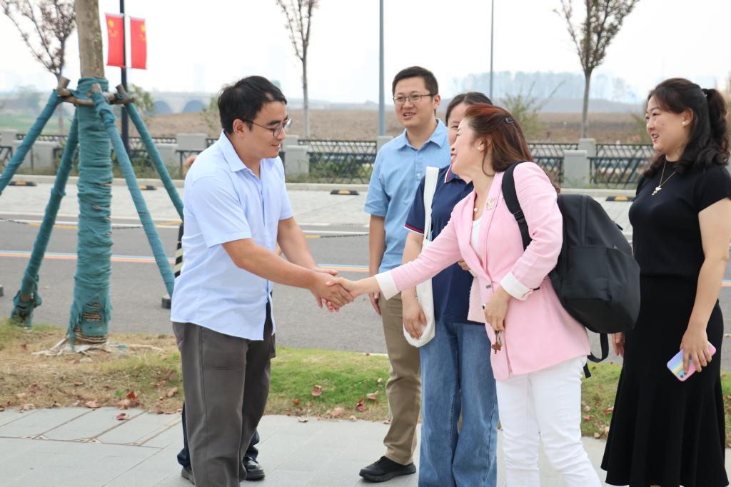 李激教授(右)迎接俞汉青教授团队汤强教授(左)