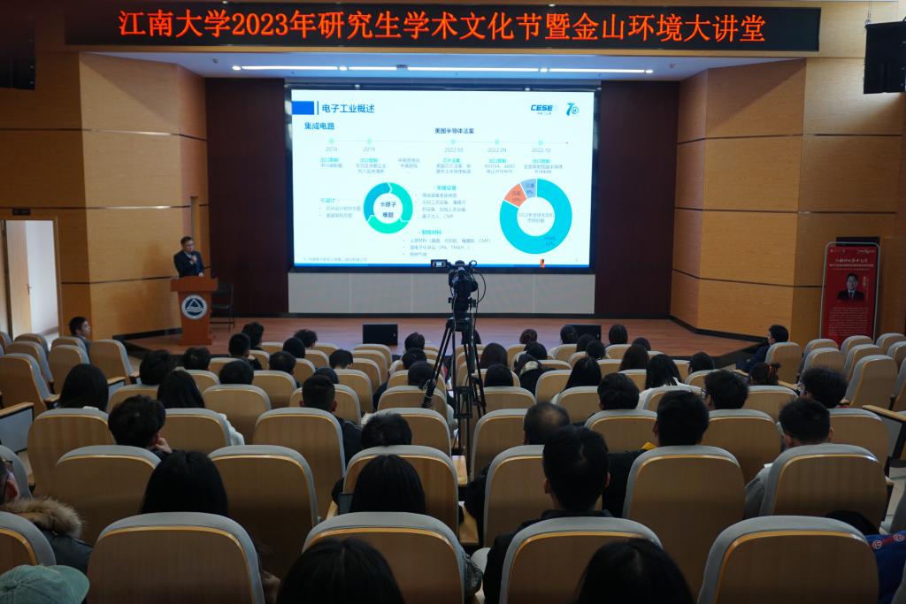 2023年研究生学术文化节江南讲坛暨金山环境大讲堂于东氿校区钱盘生楼A101成功举行。本次讲座主题为“电子工业水处理系统关键问题及技术进展”,由中国电子系统工程第二建设有限公司副总工程师熊江磊先生担任主讲人,讲座由环境与土木工程学院副院长缪恒锋教授主持。
