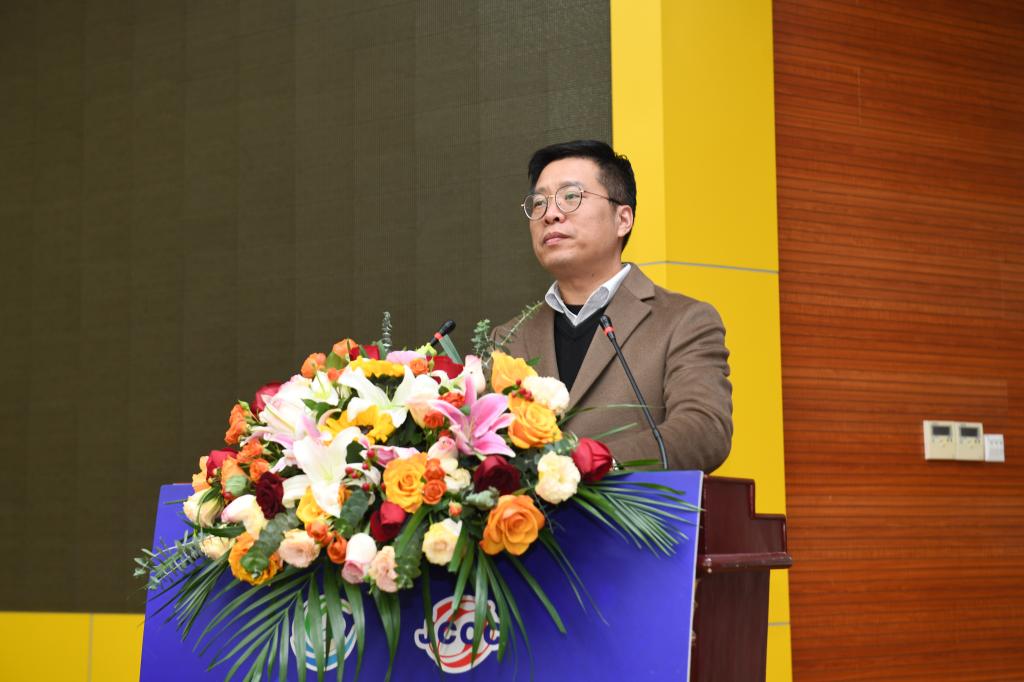 江苏金山环保工程集团党委副书记、总裁、董事会秘书长徐韬先生向大会作了董事会报告。他回顾了学院董事会发展历程,从支持学院发展、助力学科建设、人才交流培养、产学研用合作、携手党建联建五个方面介绍了近几年董事会发展的成果,也对新一届董事会建设提出了愿景。