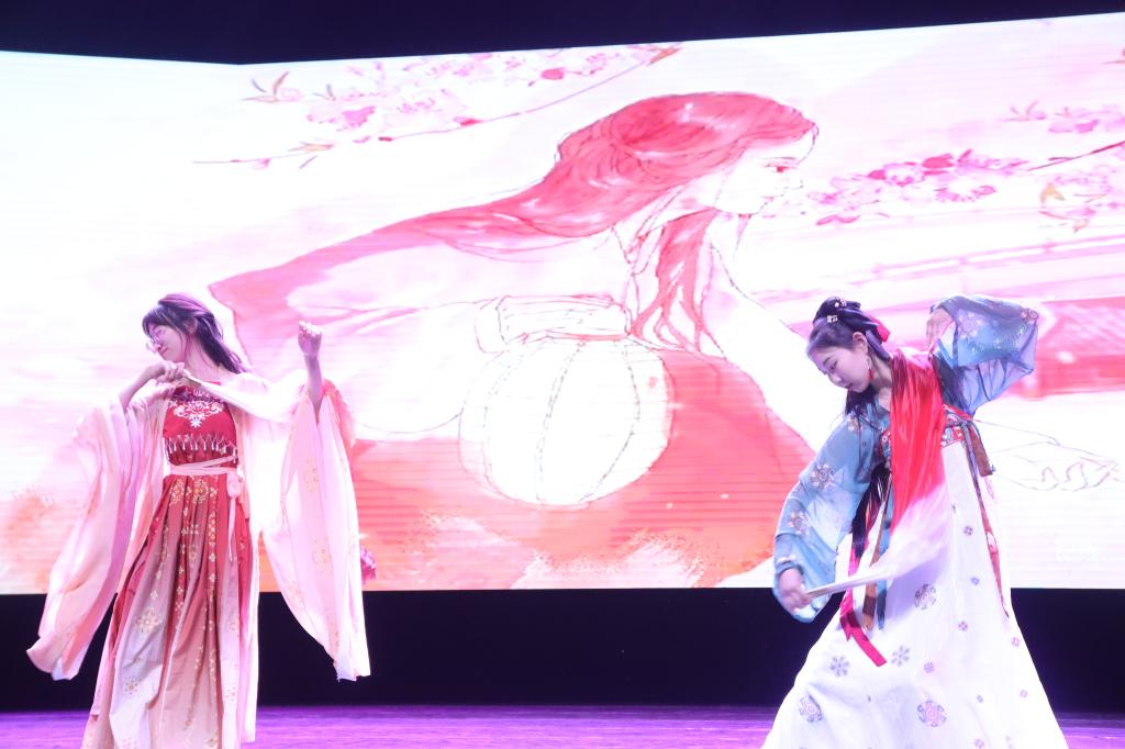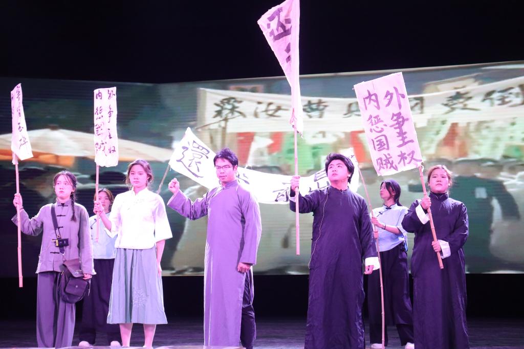 种子话剧团带来话剧《洪流》,观众的思绪被拉回1919年,还我青岛的铿锵怒吼,是千千万万中国人灵魂的悲鸣,响彻云霄,让世界为之颤栗。古风乐舞也在此刻绽放异彩,由环境科学硕士生和环境工程2301班带来的《赤伶》和《红昭愿》,余音绕梁,带给观众听觉与视觉双重感受。土木21级硕士生校舞蹈部带来舞蹈《killshot》,兼具力度与美感,台下掌声不断。制燥音乐俱乐部带来结尾表演《乐之城》,热烈而又激情的音符悦动,为晚会画上了圆满的句号。