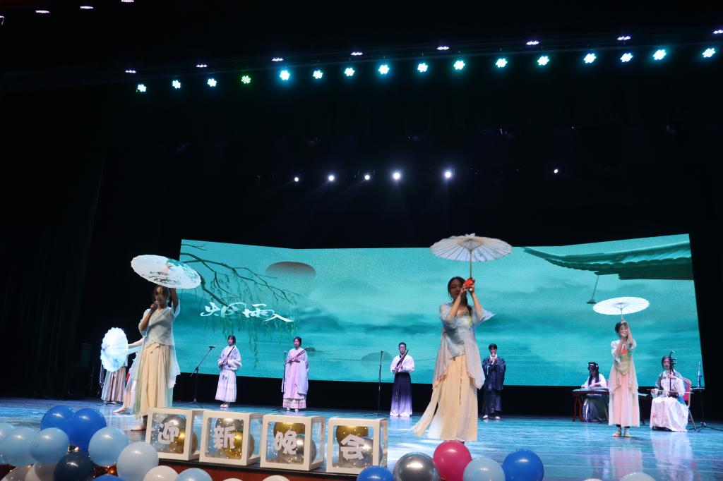 韶华肇启,如日方升。青春正当时,启程向未来。迎新晚会在六爪鱼乐队表演的《叙梦人》中正式拉开帷幕。在现场观众的热烈掌声和欢呼声中,学院党政教师团首先带来震撼的合唱《我们都是追梦人》,勉励新生奋力征程,勇敢追梦,为梦想毫无保留的绽放!接着,环境工程2302班合唱的《稻香》沁人心脾,欢快明丽。随后,ATS音乐剧社为观众带来《Another day of sun》,欢快的音符跃动在耳畔,愉悦的舞步掀动着观众的嘴角,带给观众光明和希望的感觉。缘韵笛箫社和国学社为观众带来的民乐和舞蹈《烟雨行舟》娉婷婀娜,摇曳多姿,笛声袅袅,琴音瑟瑟。环境学院艺术团的舞蹈《Dance The Night Away》飒爽英姿,动感十足。