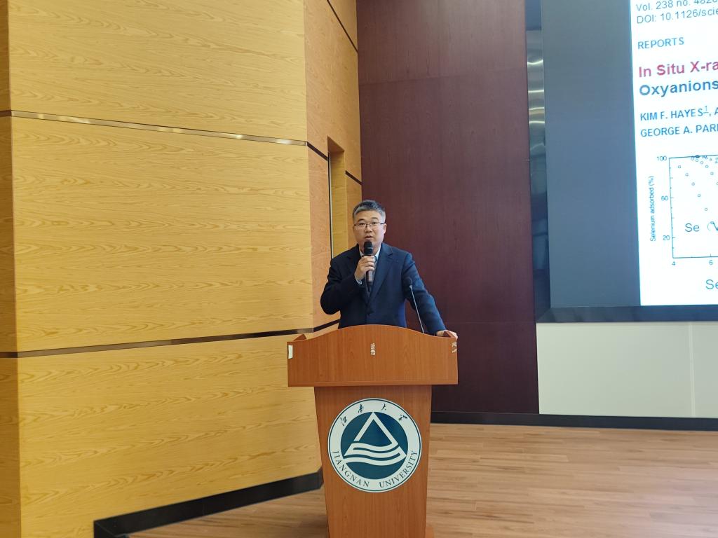 王玉军是国家“杰出青年”和“优秀青年”基金获得者,土壤与农业可持续发展国家重点实验室主任,国家重点研发项目首席科学家。长期从事土壤中污染物微界面过程及其阻控原理和重金属和有机污染物在土壤或矿物/水界面上化学过程的影响机制的研究。王研究员以“土壤重金属污染与评价”为题,从重金属的微界面化学过程讲起,介绍了重金属在土壤中的吸附分子机制,以及土壤组分如何影响重金属在土壤中的分配过程。随后,分享了如何利用重金属生物有效性多表面模型和土壤和农产品综合质量指数法预测和评价Cd等重金属的生物有效性和土壤种植环境质量。