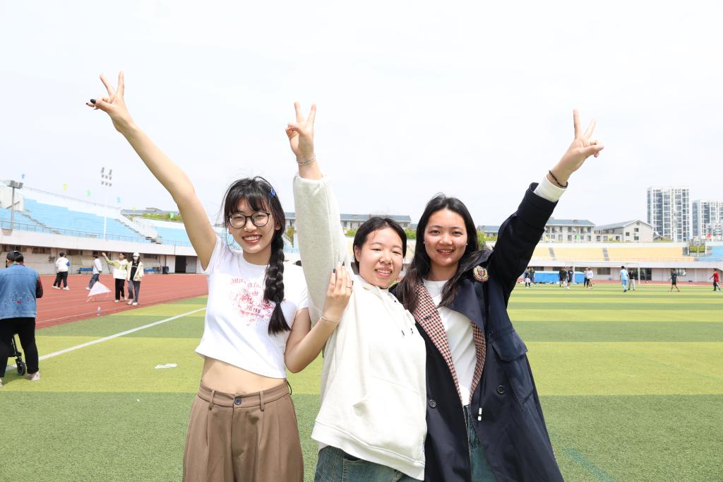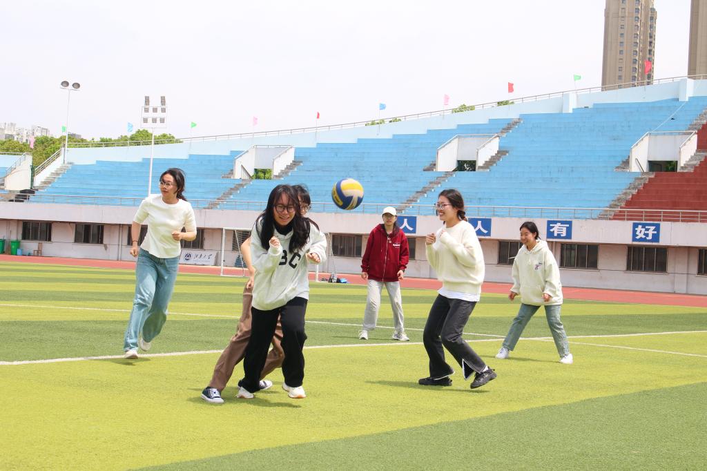 朝气蓬勃,斗志昂扬。学生组与导学组的赛场气氛也无比激昂,三人四足比赛中同学们齐心协力,默契配合,“一二一”的口号声洋溢着青春的笑声;躲避球比赛趣味横生,同学们灵活移动,迅速反应,来回穿梭,在欢乐中锻炼了反应能力和身体协调性,绿茵场上尽是他们快乐活跃的身影。