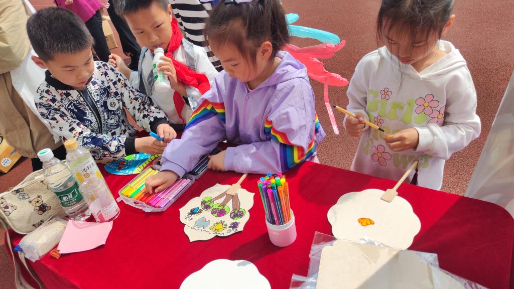 天真烂漫,其乐融融。亲子市集场面热闹非凡,家长和孩子们牵手穿梭在五彩斑斓的摊位间,欢声笑语此起彼伏。“汉服拍摄馆”中孩子们穿着美丽飘逸的汉服尽情拍照;“偏偏中意你”中孩子们奋力套圈,赢得心仪物品;“温暖抱抱抱”中,小朋友们围绕着青蛙玩偶亲密拥抱,分享快乐;“时光邮筒”中孩子们一笔一划,认真书写美好记忆;“怀旧小卖部”中,小朋友们品尝着各种小零食,泡泡机和竹蜻蜓也玩的不亦乐乎;“童心绘画班”中小朋友们拿起画笔,画出生动有趣的图案;“放飞梦想”中,孩子们天马行空的绘制风筝,与家长一起放飞。大家尽情享受着亲子时光,交流着彼此的感受和发现,整个市集弥漫着欢乐和爱的气息,让人倍感温馨和幸福。
