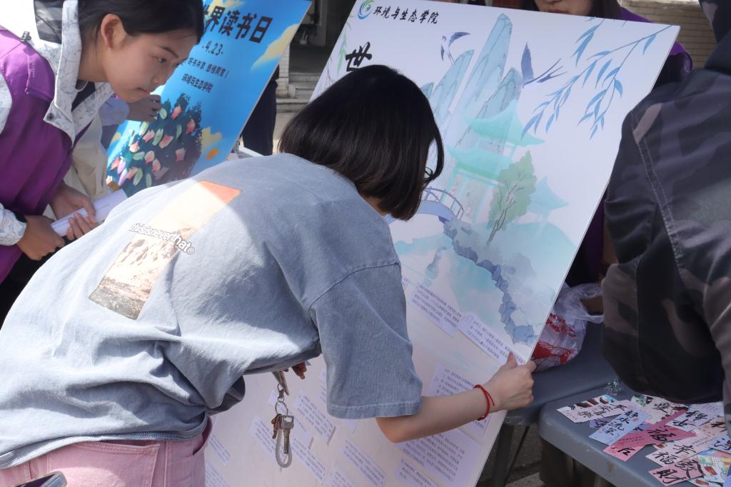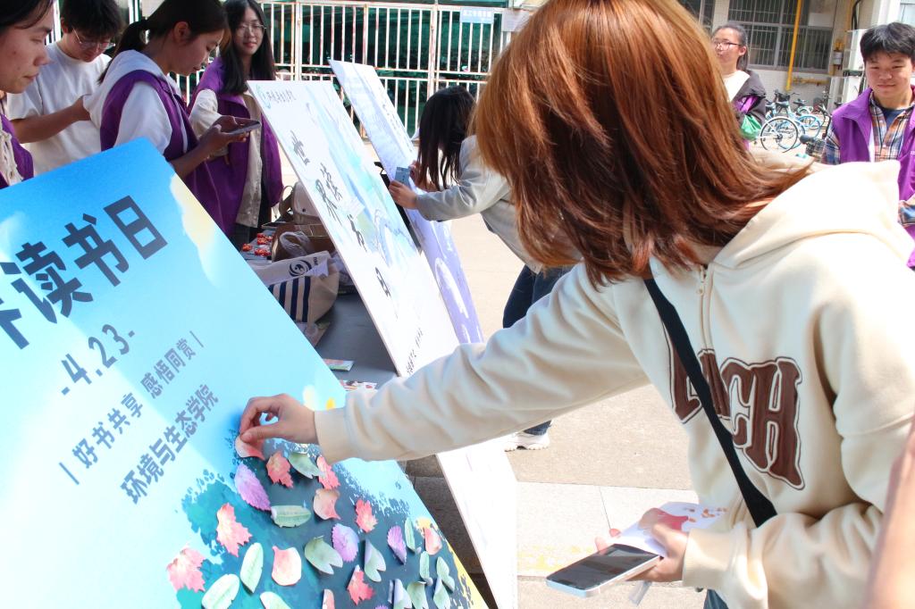 “江南题叶,翰墨飘香”活动采用好书好句分享的形式,旨在引导同学们成为文化的传承者、传播者。同学们留下期待与愿景,或是喜爱的一句话,或是一本书。活动还吸引了两名外国留学生,在工作人员的帮助下,他们也参与进到了活动中来。展板上密密麻麻地写满了学生们的留言,每一句留言都像是一颗璀璨的星辰,闪烁着智慧的光芒,讲述着一个个精彩的故事。