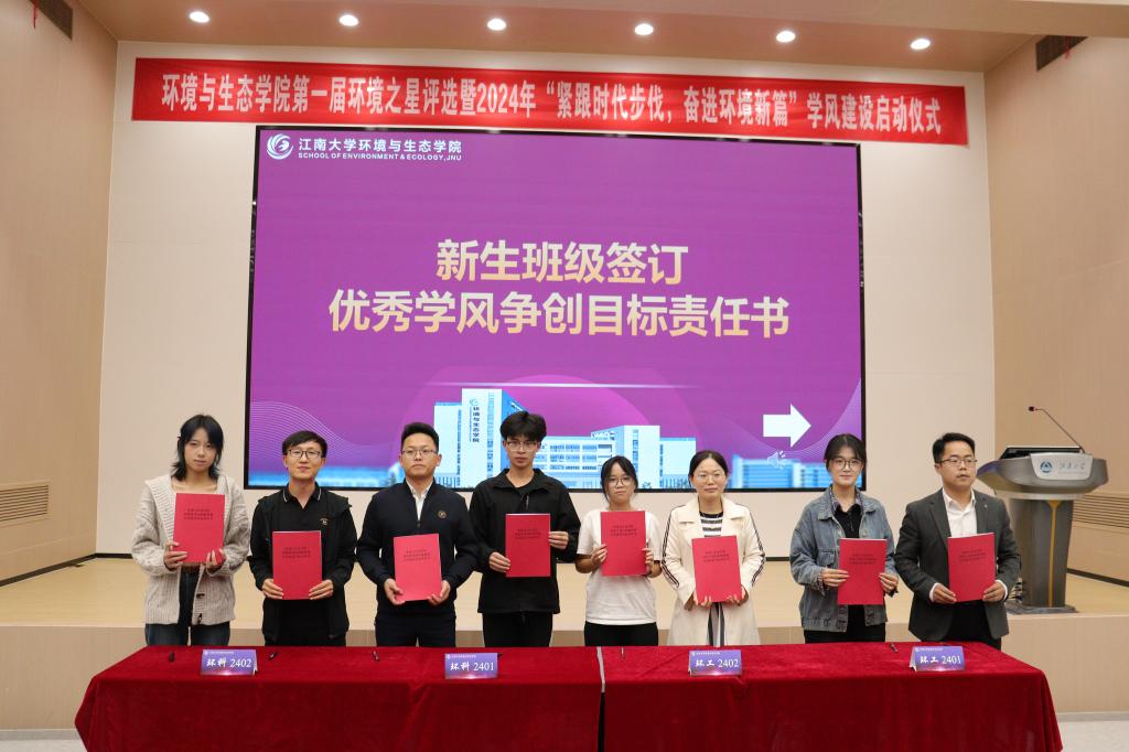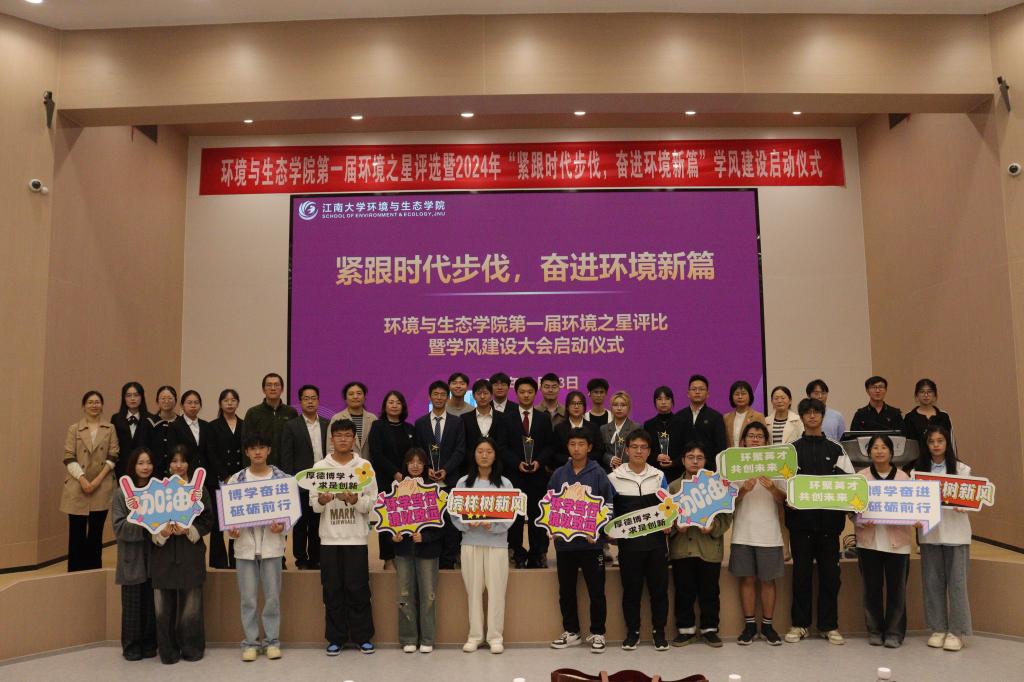 第一届“环境之星”评选暨学风建设启动仪式在1C109隆重举行。学院党委书记李艳,党委副书记、副院长胡娟、环境科学系主任王丽红,环境工程系主任王硕,2024级新生班主任满帅帅、任雪丽、虞敏达、李猛,辅导员周期、李东辉出席并担任评委。“环境之星”候选人、2024级全体本科新生、其他年级学生代表共计200余人共同参与。活动由赵苡鑫和许宏主持。