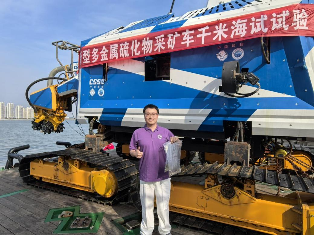 低碳环境技术实验室顾蓬副研究员圆满完成了由深海技术科学太湖实验室组织的新型多金属硫化物采矿车千米级海试。