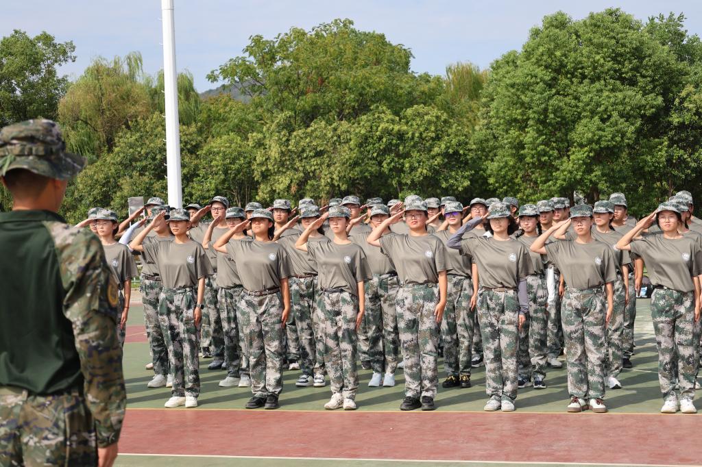 慰问过程中,新生们进行了队列动作展示和军歌合唱。他们步伐铿锵、动作整齐,展现出近日的训练成果和良好的精神风貌。合唱环节气氛热烈,彰显出磅礴的集体力量和团结奋进的作风。
