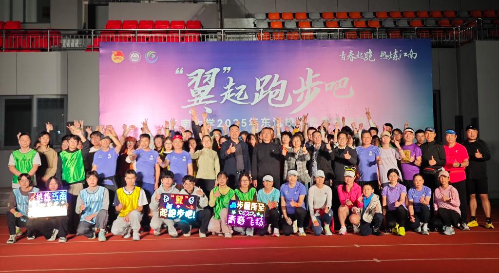 随后,杨延、李艳、赵莹、缪恒锋共同鸣枪发令,在曲水桥跑团成员的领跑下,百余名师生如潮水般涌出起跑线。统一的服装、矫健的步伐、响亮的口号,构成了夜色中最动人的风景。赛道上,师生们你追我赶,相互鼓励,用汗水诠释着青春的活力与拼搏的意义。