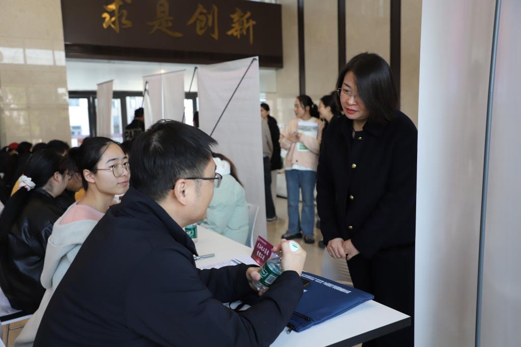 在招聘会现场,学院党委书记杨延与宜兴市人社局一行亲切交流,双方就深化校地合作、精准对接人才需求、共促毕业生高质量就业等议题进行了深入沟通。党委副书记、副院长胡娟表示学院始终坚持以人才培养为中心,注重理论与实践相结合,希望毕业生们能够抓住机遇,积极投身于国家环保事业,为实现美丽中国目标贡献自己的力量。2026届毕业生徐晨涛说此次招聘会的企业实力强,招聘岗位多,职位适配度也非常高,为毕业生提供了更多的选择,让他们对未来的职业发展充满信心。