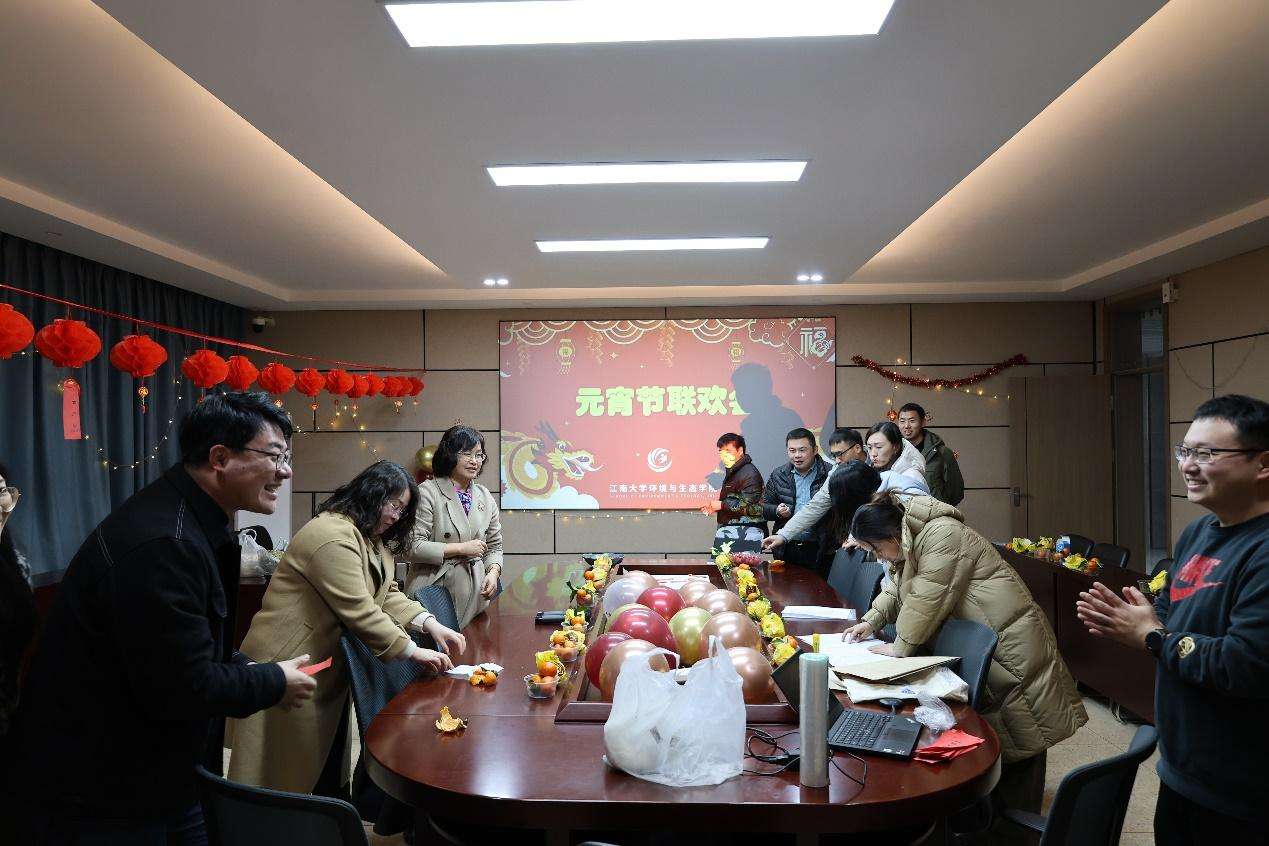 猜灯谜是中国独有的传统民俗文娱活动形式,面对一道道灯谜,老师们兴致勃勃,积极开动脑筋,在一次次谜底揭晓中传递知识、分享快乐,活动现场氛围轻松热烈。一口软糯的汤圆,凝聚了老师们对新年新学期的美好希冀。学院工会为老师们提供了多种口味的汤圆之余,为丰富庆祝形式,预先准备好饺子馅,老师们分工协作,有的擀面皮,有的做造型,有的捏花边,欢声笑语,其乐融融。当大家品味自己亲手制作的食物带来的唇齿留香,笑容洋溢在每位参与者的脸上,欢乐的气氛回荡在学院的每一个角落。