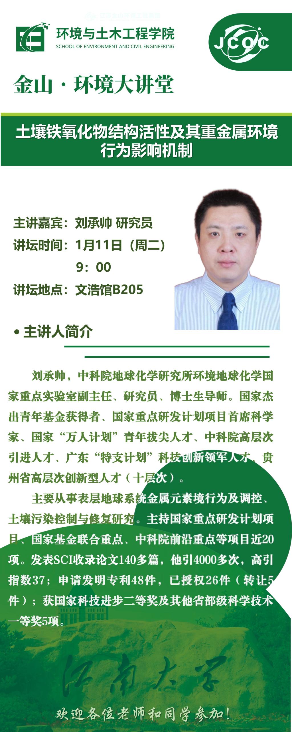 金山·环境大讲堂--刘承帅:土壤铁氧化物结构活性及其重金属环境行为影响机制