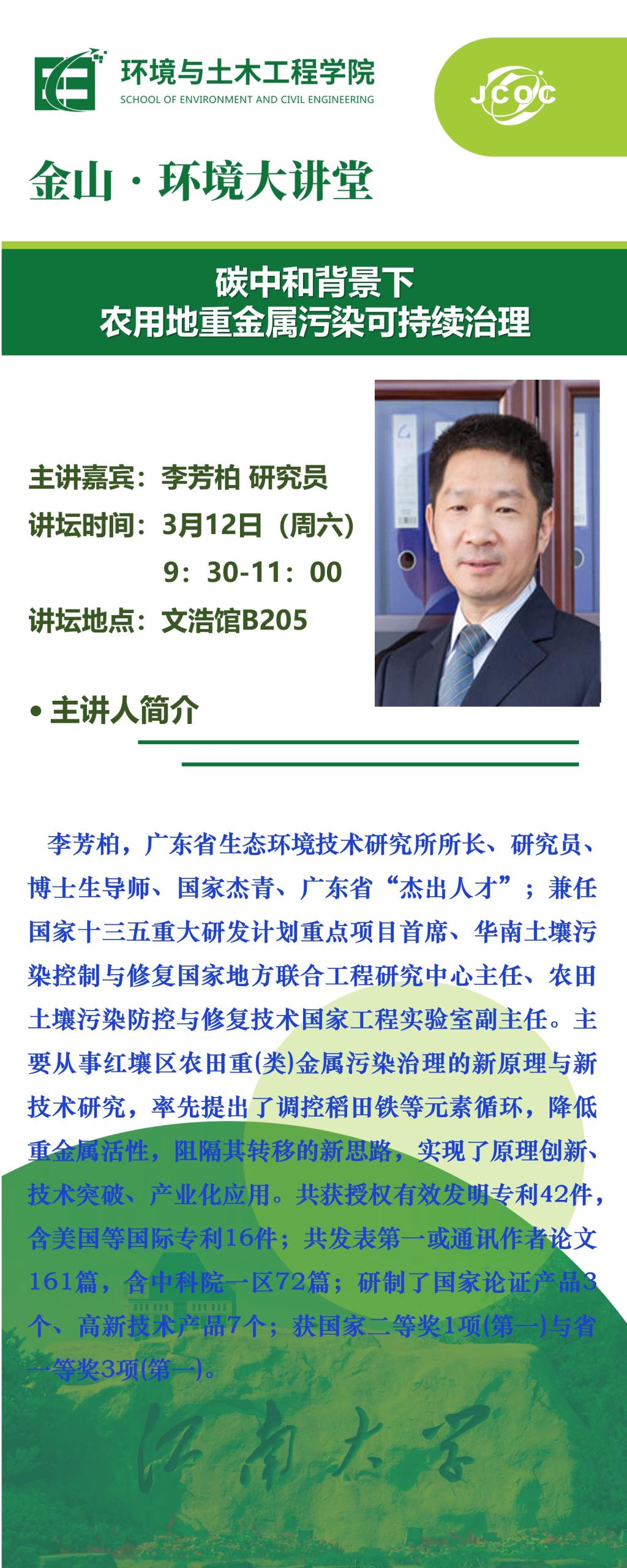 金山·环境大讲堂--李芳柏:碳中和背景下农用地重金属污染可持续治理