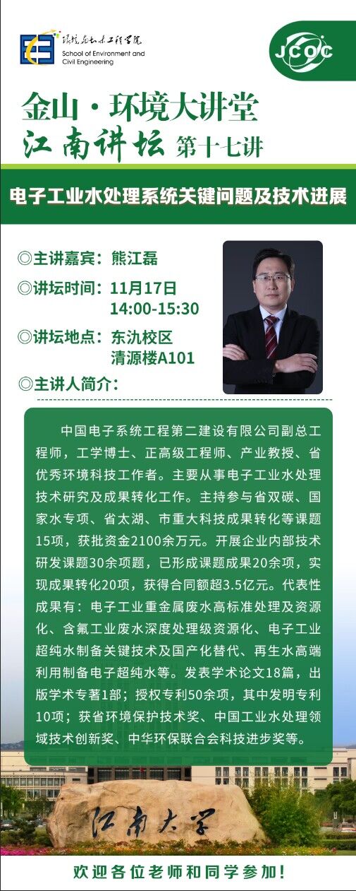 金山·环境大讲堂——熊江磊:电子工业水处理系统关键问题及技术进展