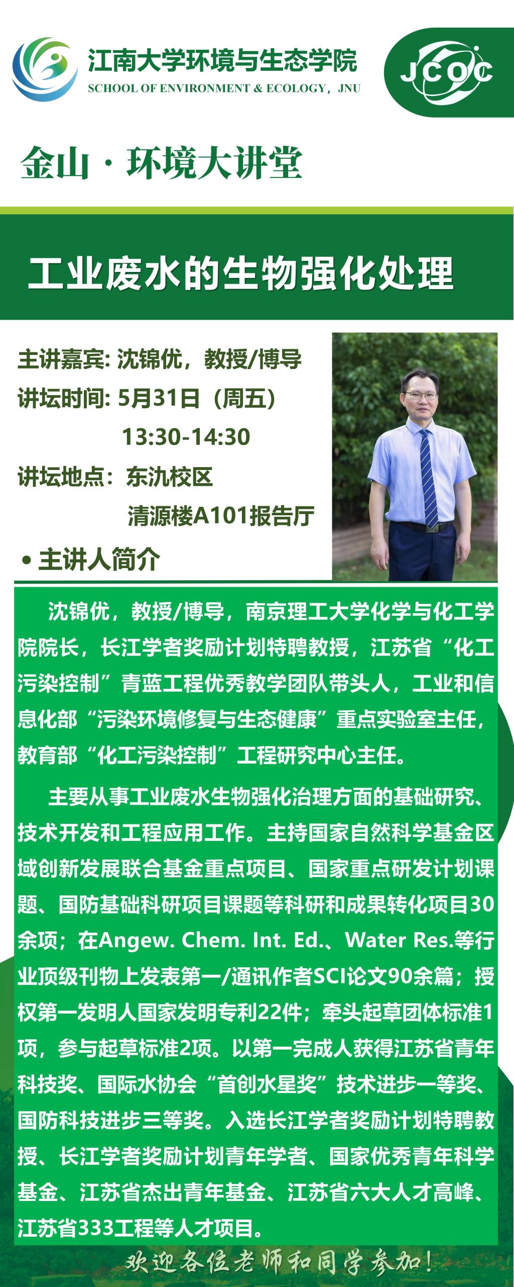 金山•环境大讲堂—— 沈锦优:工业废水的生物强化处理