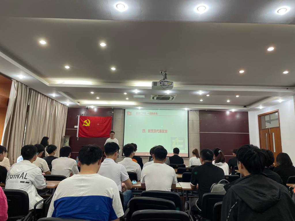 宣誓仪式结束后,衡延笃老师以“立志明德,堪当重任”为主题,讲授了一堂生动的党课,对全体新党员进行了一次党性教育。衡老师从建党100周年伟大奋斗历程中汲取智慧和力量,指出新时代青年肩负着建设社会主义现代化的重任,要进一步将思想、行动统一到习近平总书记重要讲话精神和党中央决策部署上来。全体与会同志纷纷表示,奋斗是青春最亮丽的底色,行动是青年最有效的磨砺;会恪守在党旗下的誓言,更加严格要求自己,让青春在磨砺中出彩,在建设新时代的不懈奋斗中升华,努力使自己成为一名优秀的共产党员。